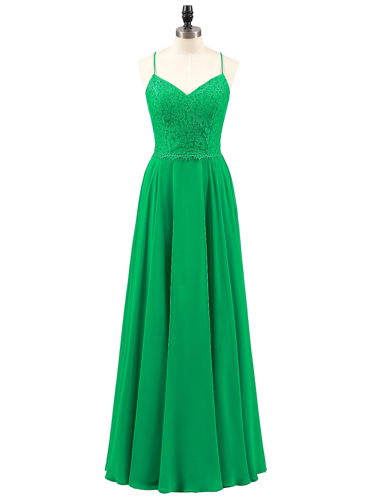Spaghetti Strap Lace Dress with Corset Back-Emerald