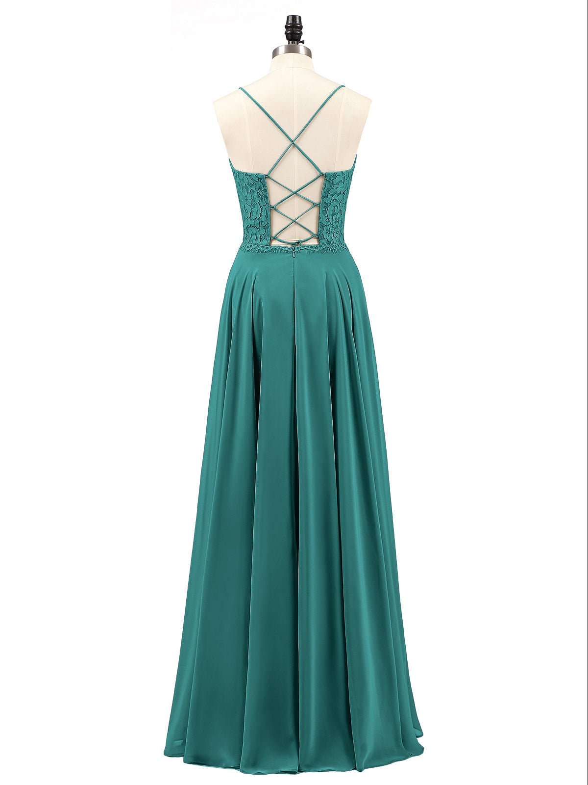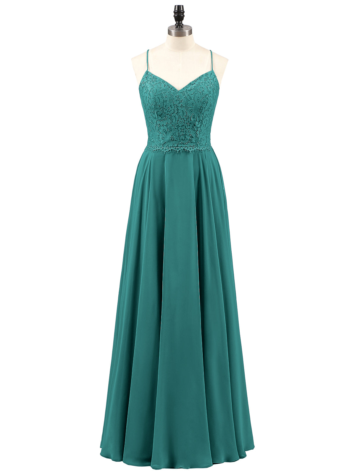 Spaghetti Strap Lace Dress with Corset Back-Peacock