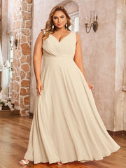 V Neckline Chiffon Bridesmaid Dresses Champagne Plus Size
