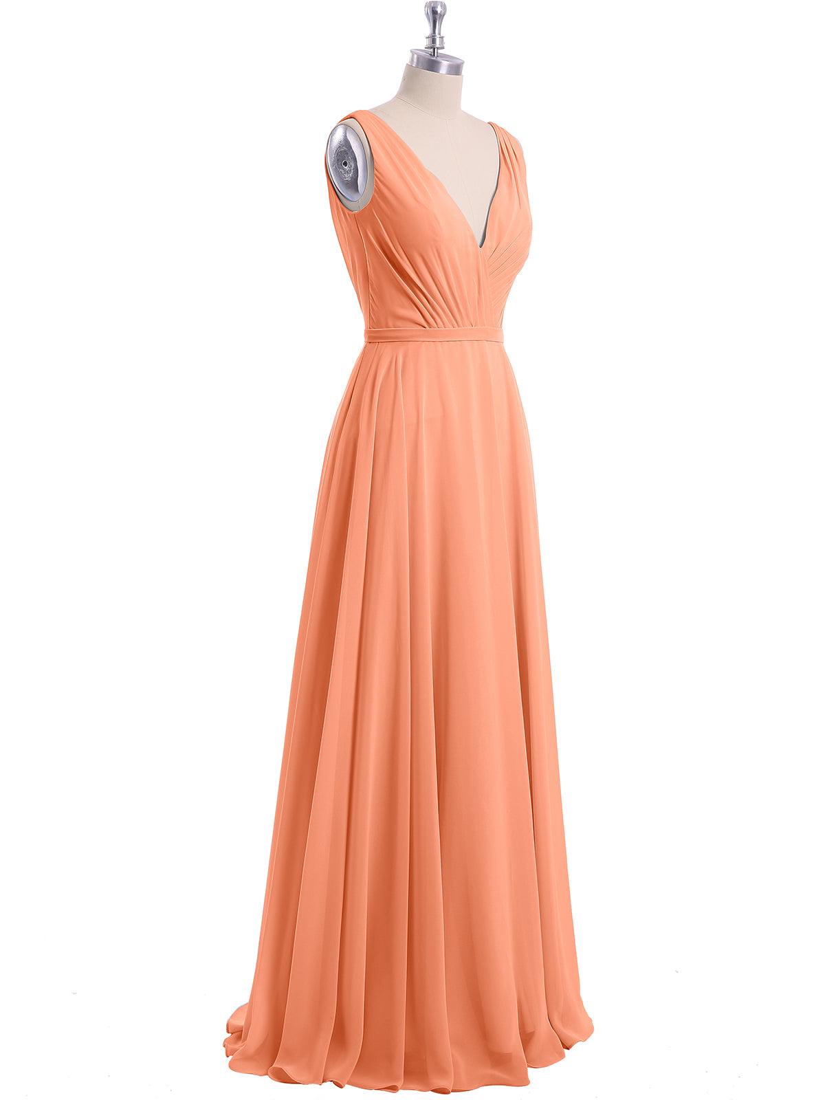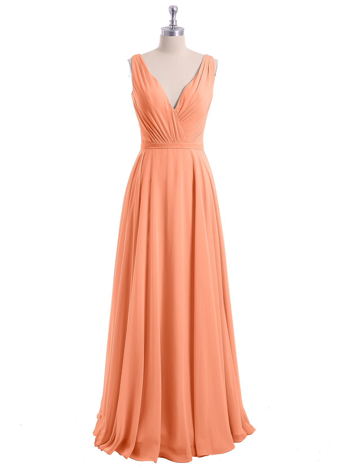 V Neckline Chiffon Bridesmaid Dresses Papaya Plus Size