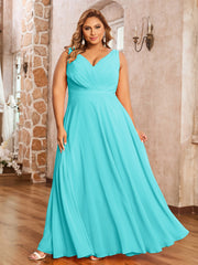 V Neckline Chiffon Bridesmaid Dresses Pool Plus Size