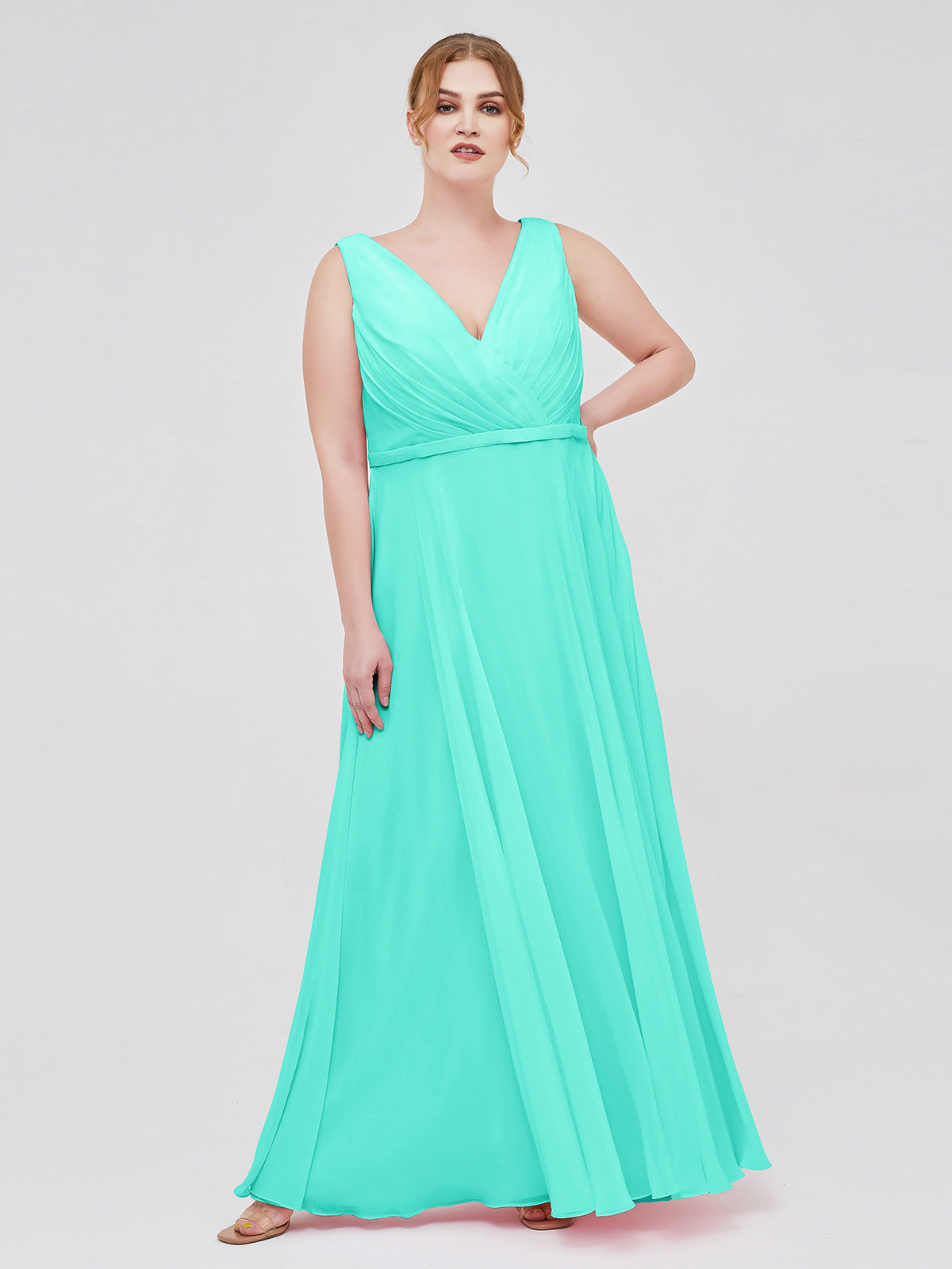 V Neckline Chiffon Bridesmaid Dresses Spa Plus Size