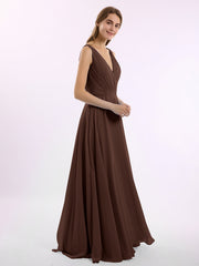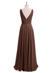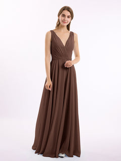 V Neckline Chiffon Bridesmaid Dresses Chocolate