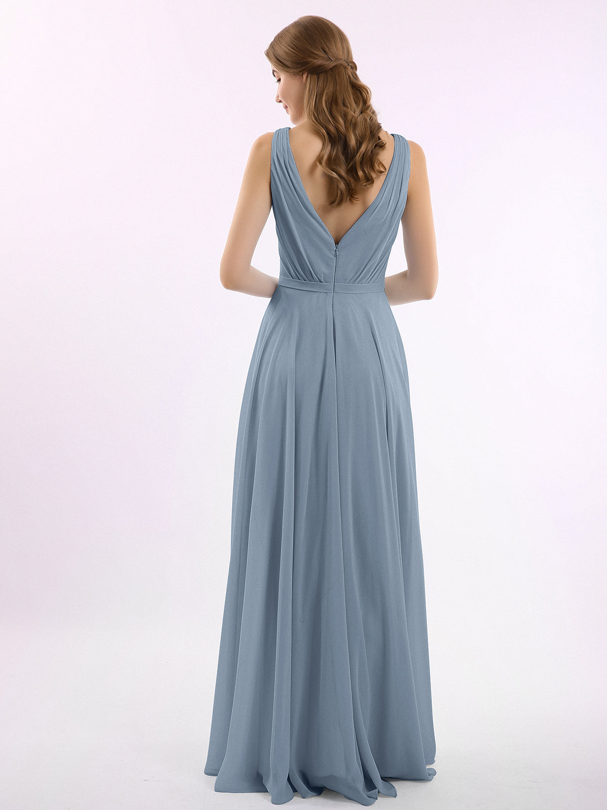 V Neckline Chiffon Bridesmaid Dresses Dusty Blue