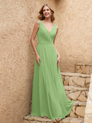 V Neckline Chiffon Bridesmaid Dresses Sage