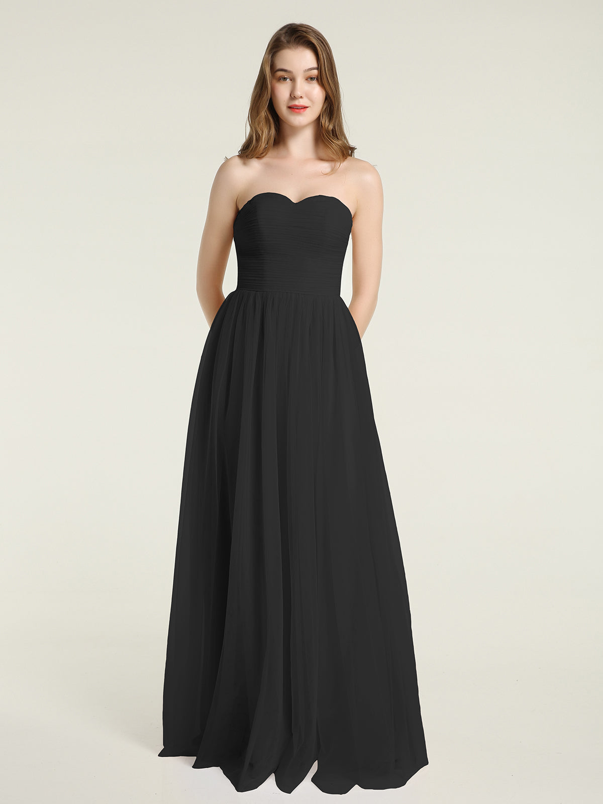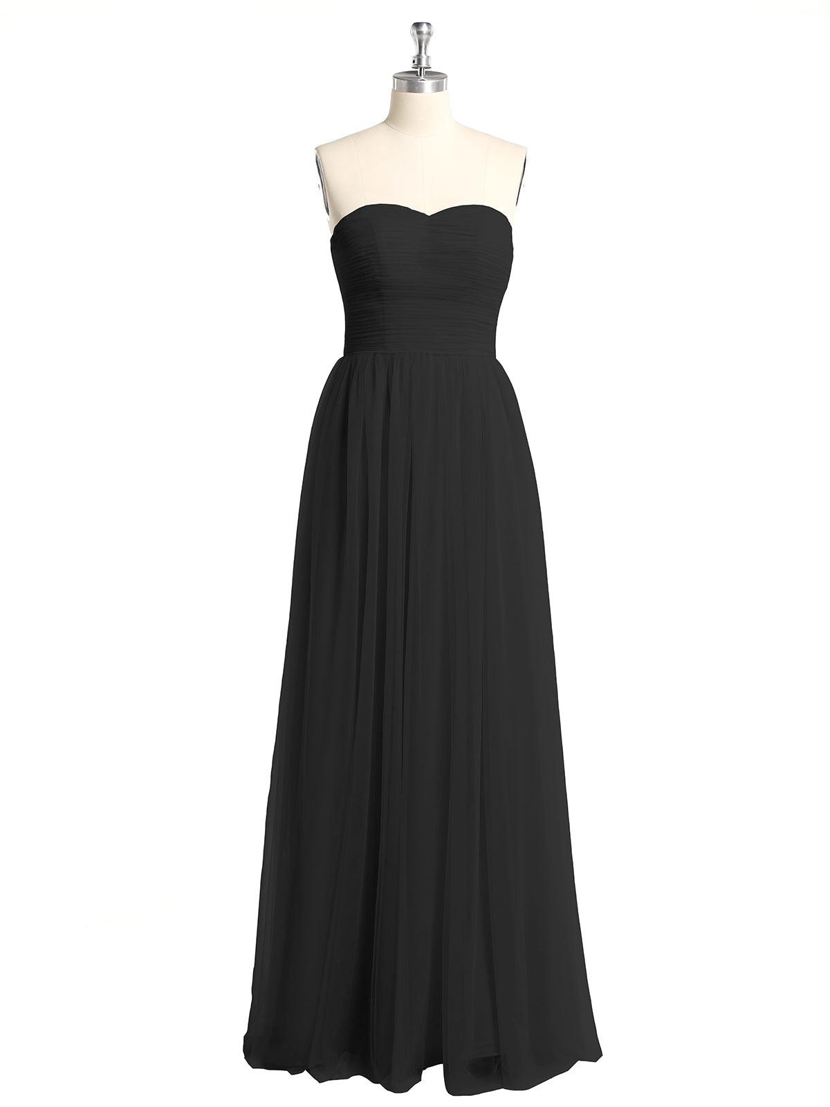 Strapless Sweetheart Long Tulle Bridesmaid Dresses-Black