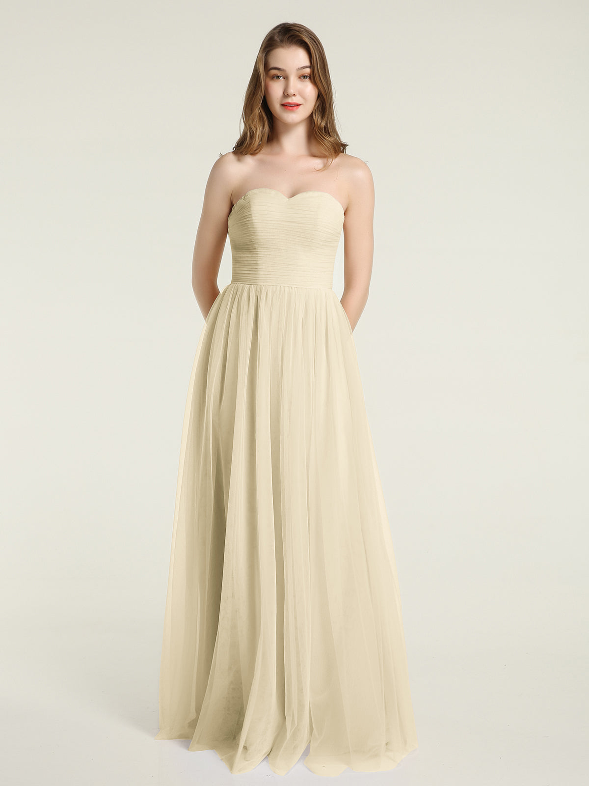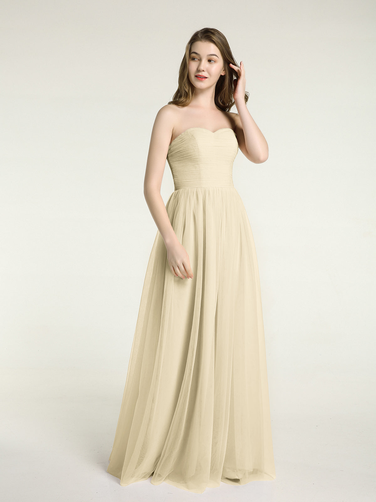 Strapless Sweetheart Long Tulle Bridesmaid Dresses-Champagne