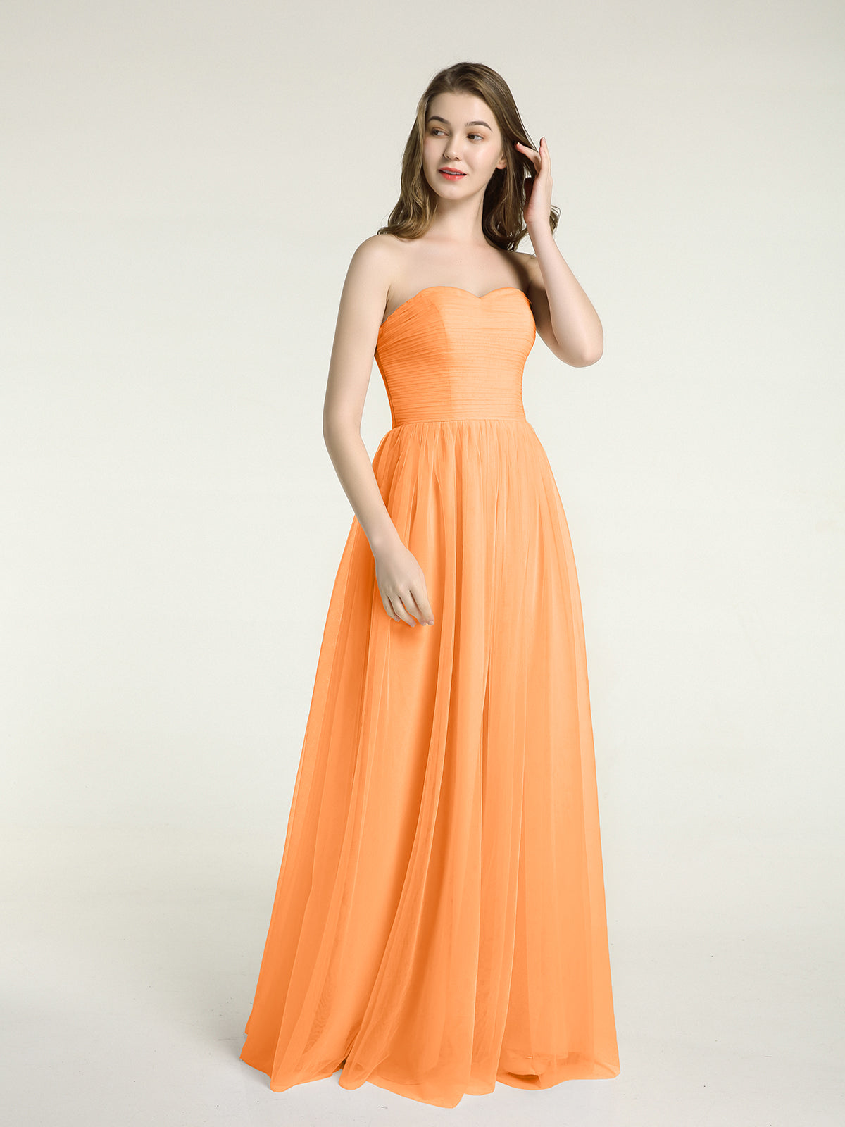 Strapless Sweetheart Long Tulle Bridesmaid Dresses-Orange