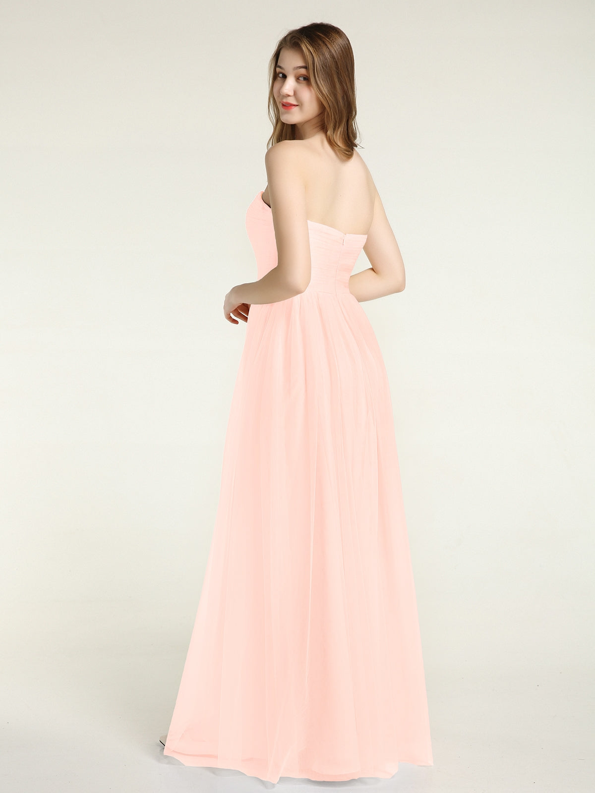 Strapless Sweetheart Long Tulle Bridesmaid Dresses-Pearl Pink