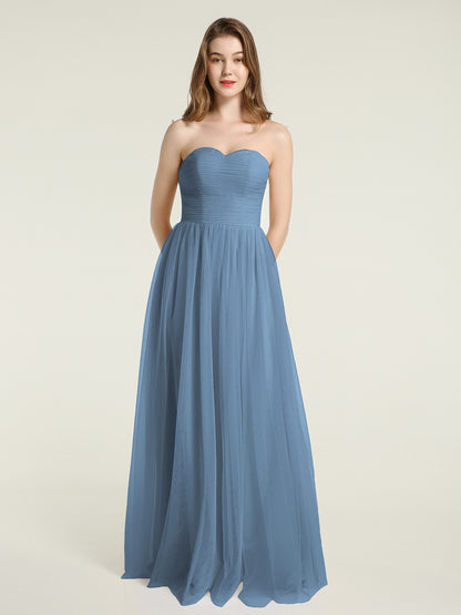 Strapless Sweetheart Long Tulle Bridesmaid Dresses-Slate Blue