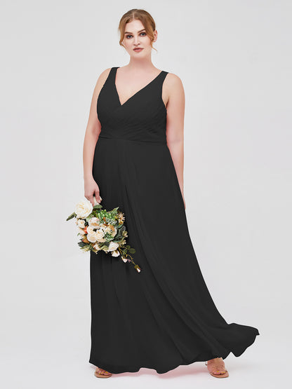 V-neck Chiffon Bridesmaid Dress with Open Back Black Plus Size