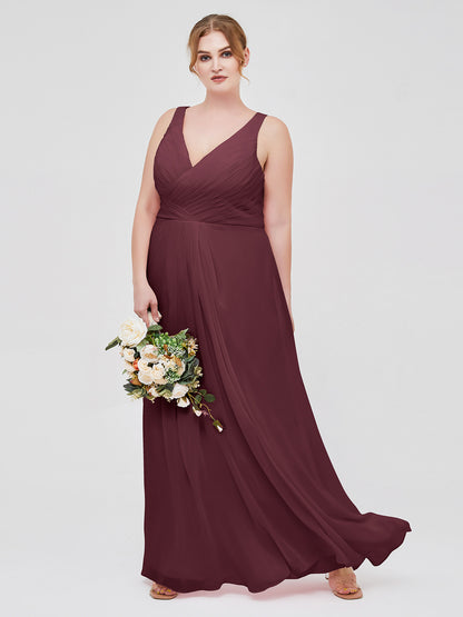 V-neck Chiffon Bridesmaid Dress with Open Back Cabernet Plus Size