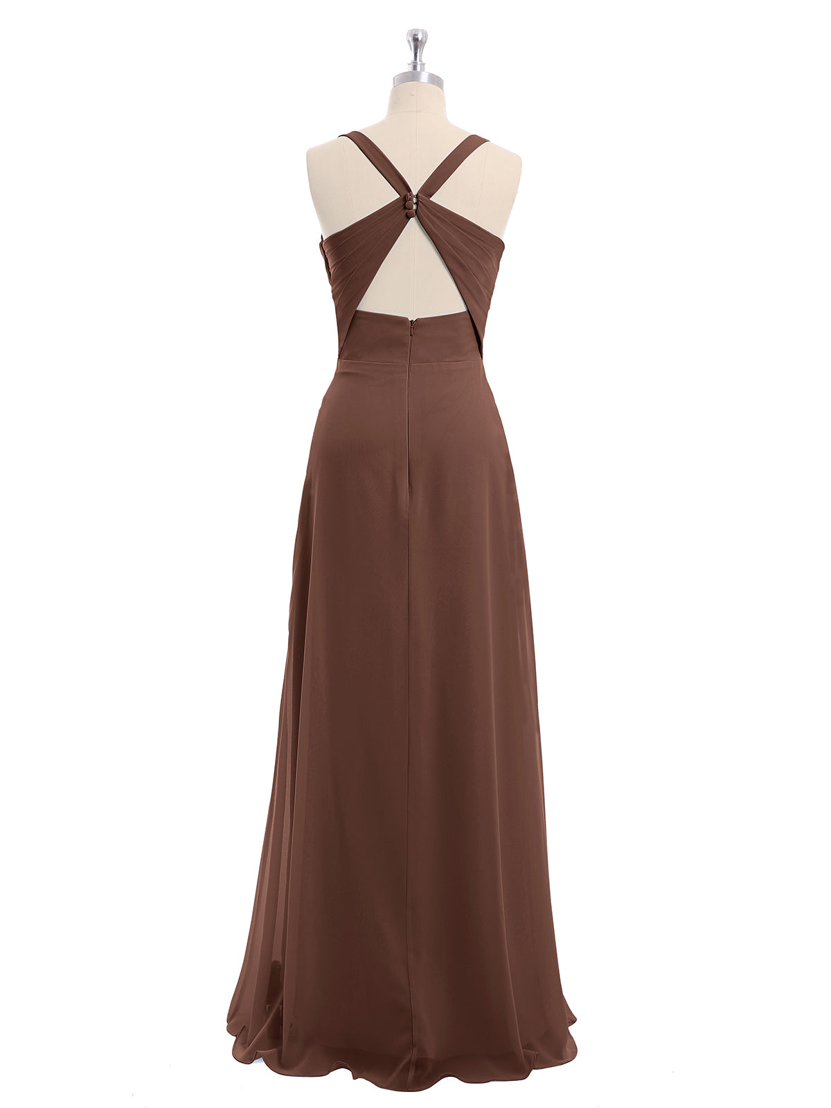 V-neck Chiffon Bridesmaid Dress with Open Back Chocolate Plus Size