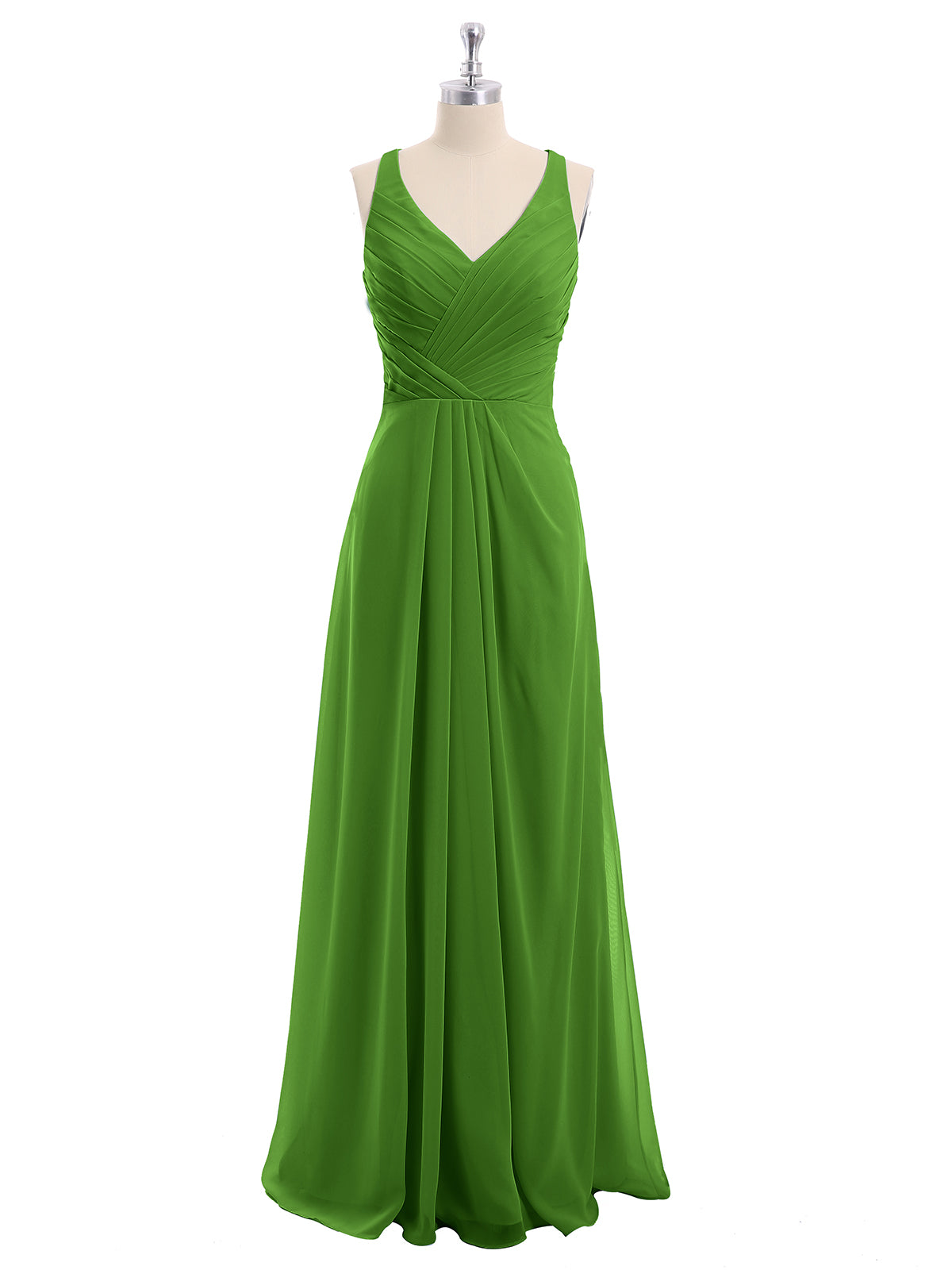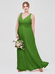 V-neck Chiffon Bridesmaid Dress with Open Back Moss Plus Size