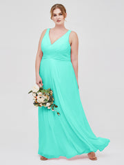 V-neck Chiffon Bridesmaid Dress with Open Back Spa Plus Size