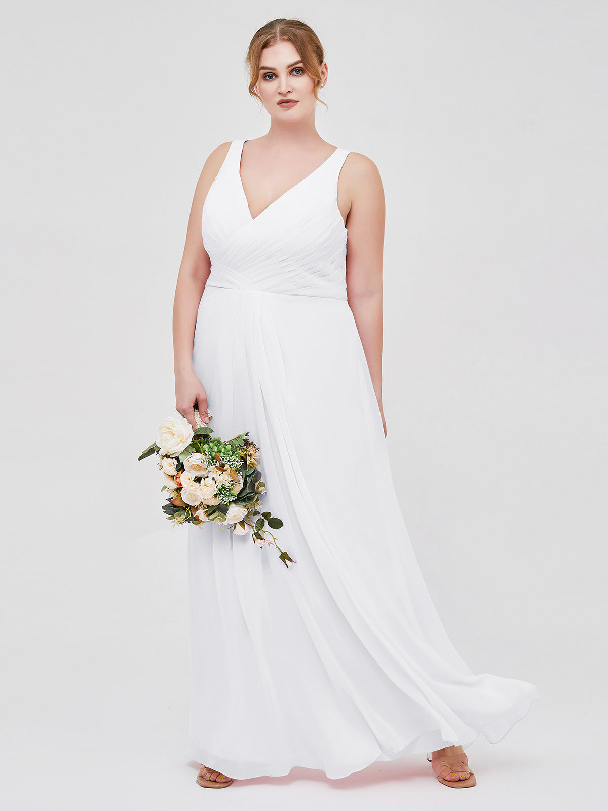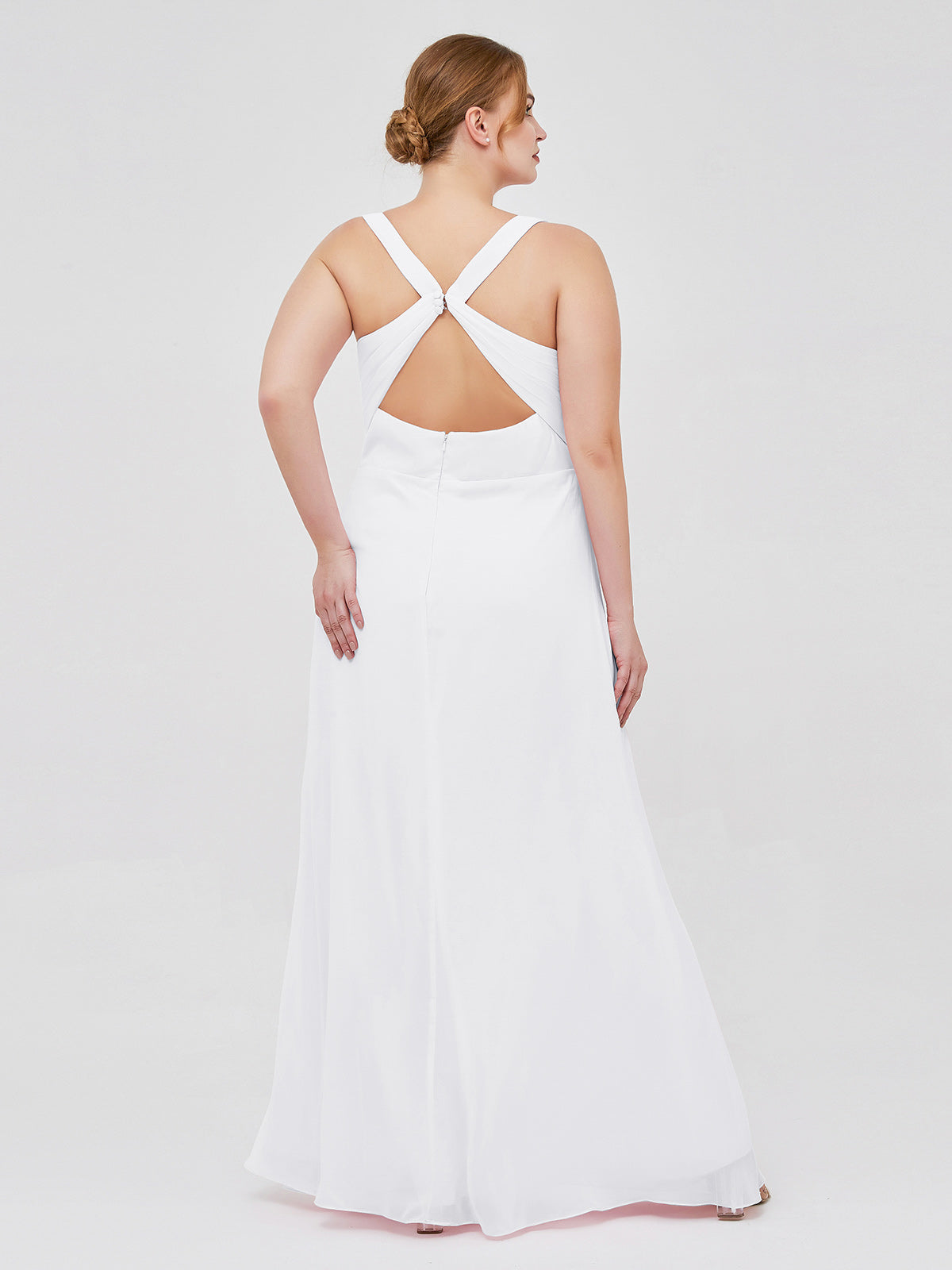 V-neck Chiffon Bridesmaid Dress with Open Back White Plus Size
