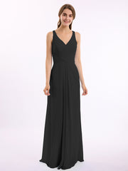 V-neck Chiffon Bridesmaid Dress with Open Back Black