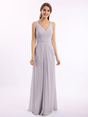 V-neck Chiffon Bridesmaid Dress with Open Back Dusk