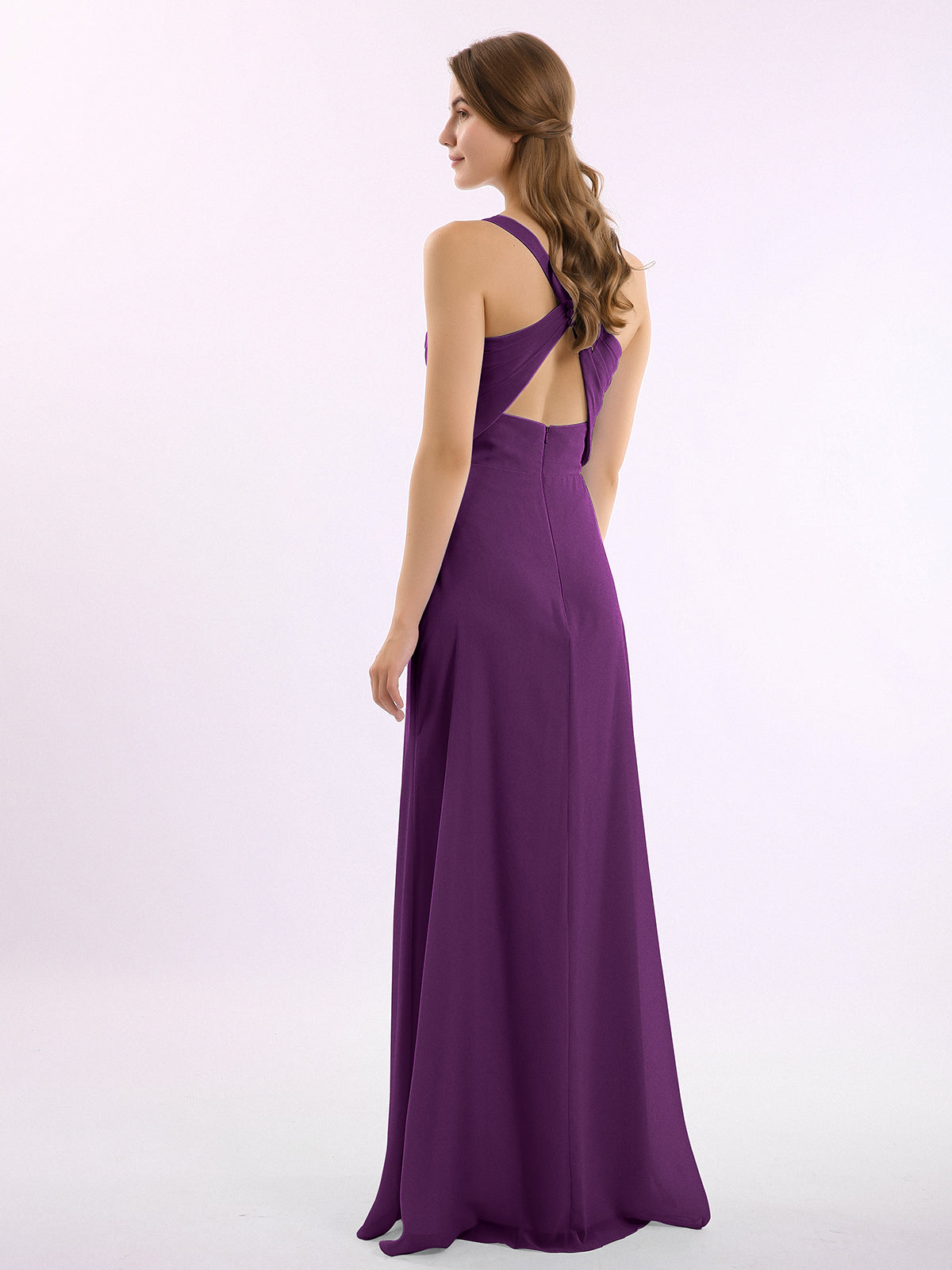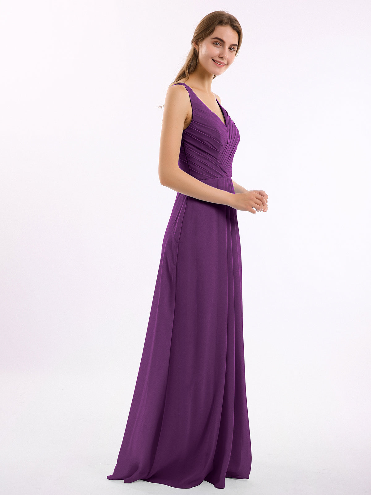 V-neck Chiffon Bridesmaid Dress with Open Back Grape