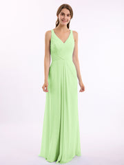 V-neck Chiffon Bridesmaid Dress with Open Back Sage