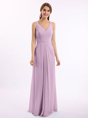 V-neck Chiffon Bridesmaid Dress with Open Back Wisteria