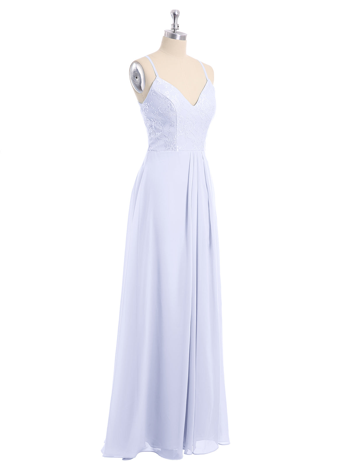 • Wanda is a beautiful long chiffon dress decorated with lace on the upper bodice.
