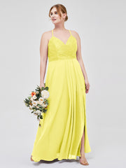 Lace Bodice Chiffon Skirt Dresses with Slit Lemon Plus Size