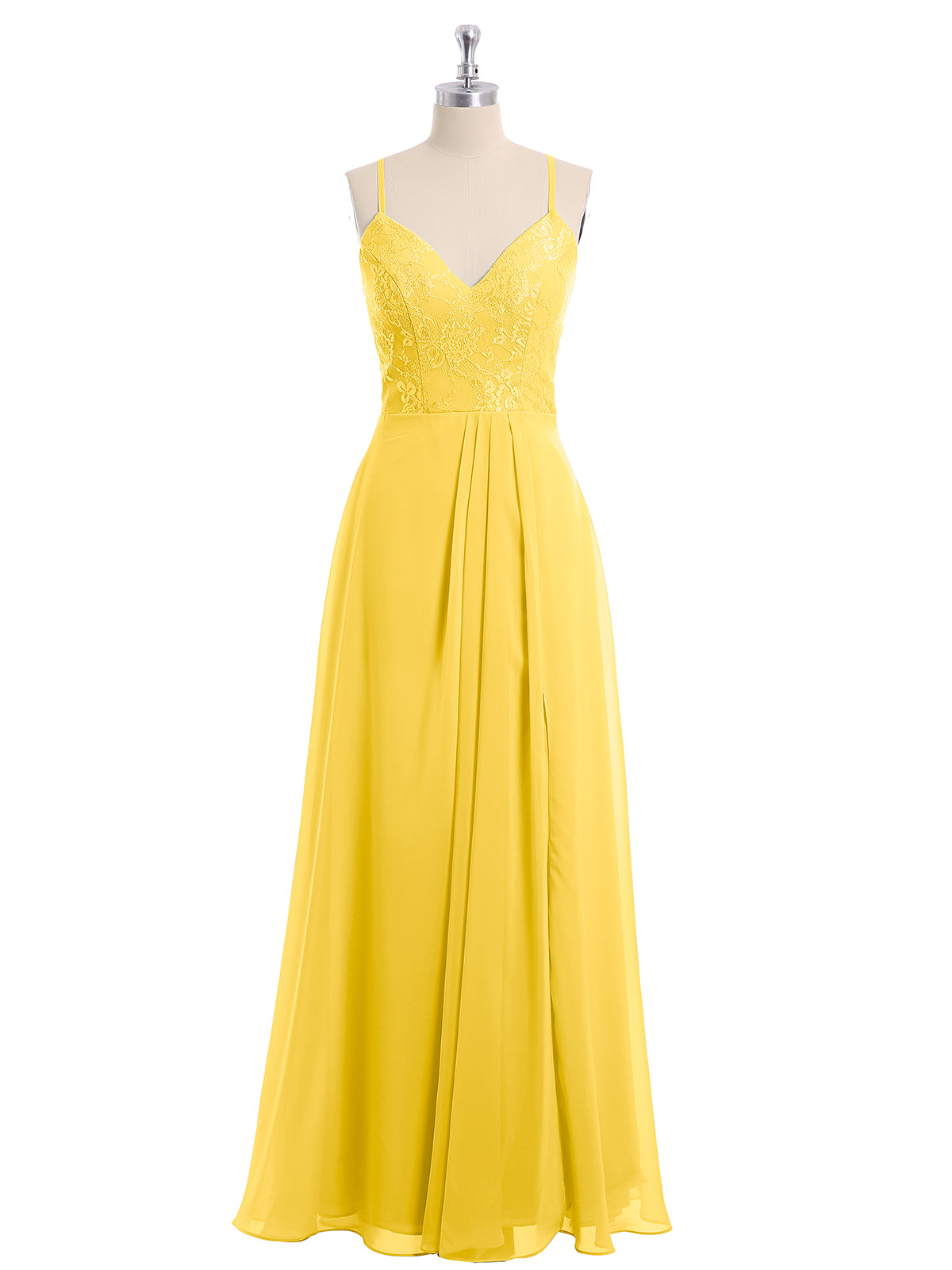 • Wanda is a beautiful long chiffon dress decorated with lace on the upper bodice.