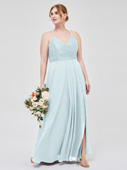 Lace Bodice Chiffon Skirt Dresses with Slit Mist Plus Size