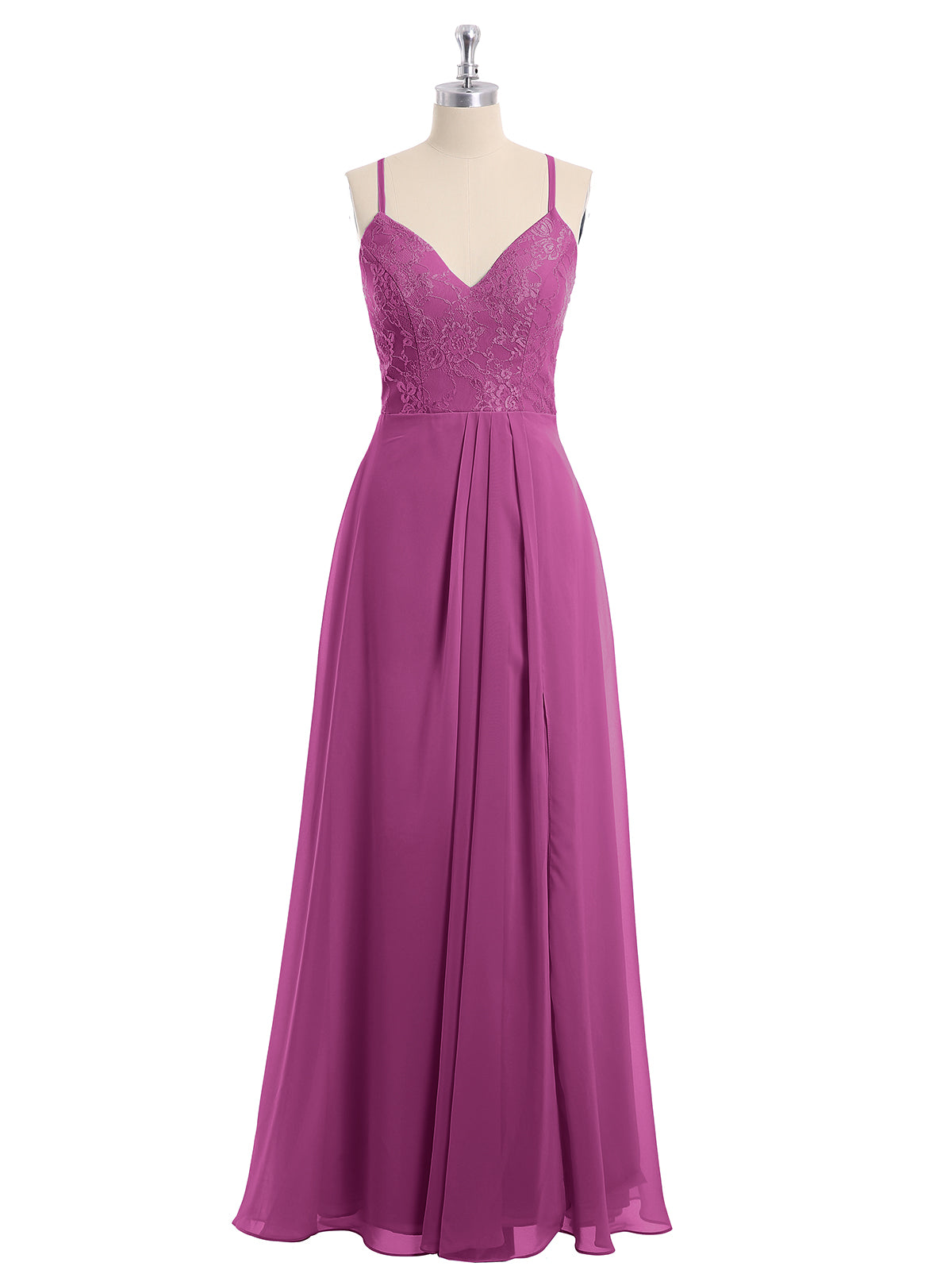 Lace Bodice Chiffon Skirt Dresses with Slit Orchid Plus Size