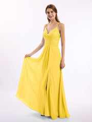 Lace Bodice Chiffon Skirt Dresses with Slit Marigold
