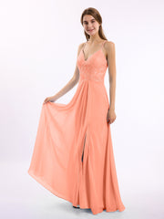 Lace Bodice Chiffon Skirt Dresses with Slit Sunset
