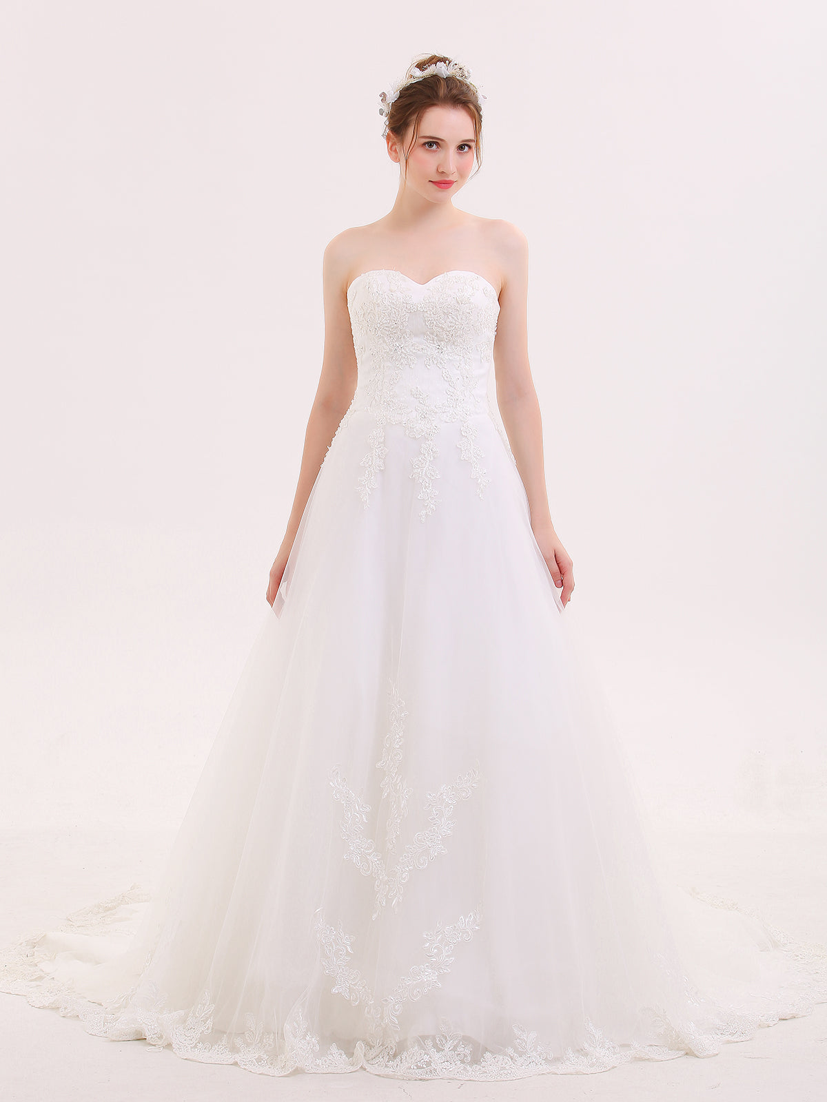 Strapless Sweetheart Neck Wedding Gown-Ivory