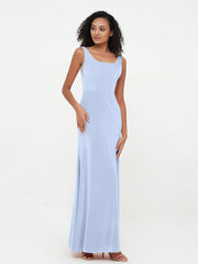 Bateau Neck Mermaid Long Velvet Dresses Sky Blue Plus Size