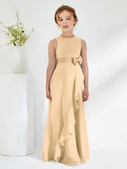 Bateau Neckline Ruffle Junior Bridesmaid Gowns Champagne