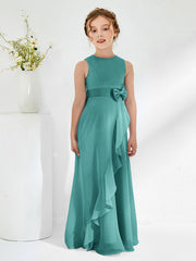 Bateau Neckline Ruffle Junior Bridesmaid Gowns Jade