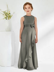 Bateau Neckline Ruffle Junior Bridesmaid Gowns Steel Grey
