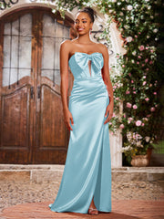 Bow Corset Strapless Sheath/Column Prom Dresses With Slit Mist