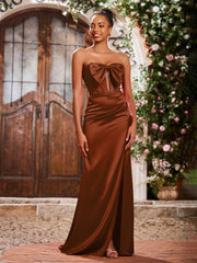 Bow Corset Strapless Sheath/Column Prom Dresses With Slit Terracotta