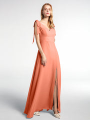 Bowed Flat Strap Chiffon Maxi with Front Slit-Sunset