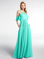 • Elegant full-length lux chiffon dress Sabrina with an alluring cold shoulder is so pretty and stunning.