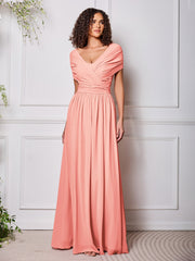 • A versatile bridesmaid dress with a flowy design, featuring two extra-long front streamers attached at the waist. These streamers can be styled in various ways, offering multiple looks for the perfect fit and elegance on the big day.