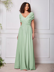• A versatile bridesmaid dress with a flowy design, featuring two extra-long front streamers attached at the waist. These streamers can be styled in various ways, offering multiple looks for the perfect fit and elegance on the big day.
