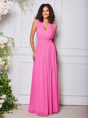 • A versatile bridesmaid dress with a flowy design, featuring two extra-long front streamers attached at the waist. These streamers can be styled in various ways, offering multiple looks for the perfect fit and elegance on the big day.