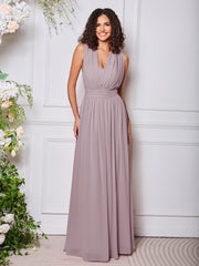 • A versatile bridesmaid dress with a flowy design, featuring two extra-long front streamers attached at the waist. These streamers can be styled in various ways, offering multiple looks for the perfect fit and elegance on the big day.