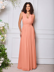 • A versatile bridesmaid dress with a flowy design, featuring two extra-long front streamers attached at the waist. These streamers can be styled in various ways, offering multiple looks for the perfect fit and elegance on the big day.