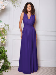 • A versatile bridesmaid dress with a flowy design, featuring two extra-long front streamers attached at the waist. These streamers can be styled in various ways, offering multiple looks for the perfect fit and elegance on the big day.