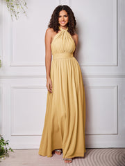 High-Neck Halter Gold Multi Wear Convertible Bridesmaid Dresses
