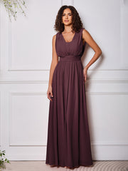• A versatile bridesmaid dress with a flowy design, featuring two extra-long front streamers attached at the waist. These streamers can be styled in various ways, offering multiple looks for the perfect fit and elegance on the big day.