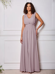 • A versatile bridesmaid dress with a flowy design, featuring two extra-long front streamers attached at the waist. These streamers can be styled in various ways, offering multiple looks for the perfect fit and elegance on the big day.